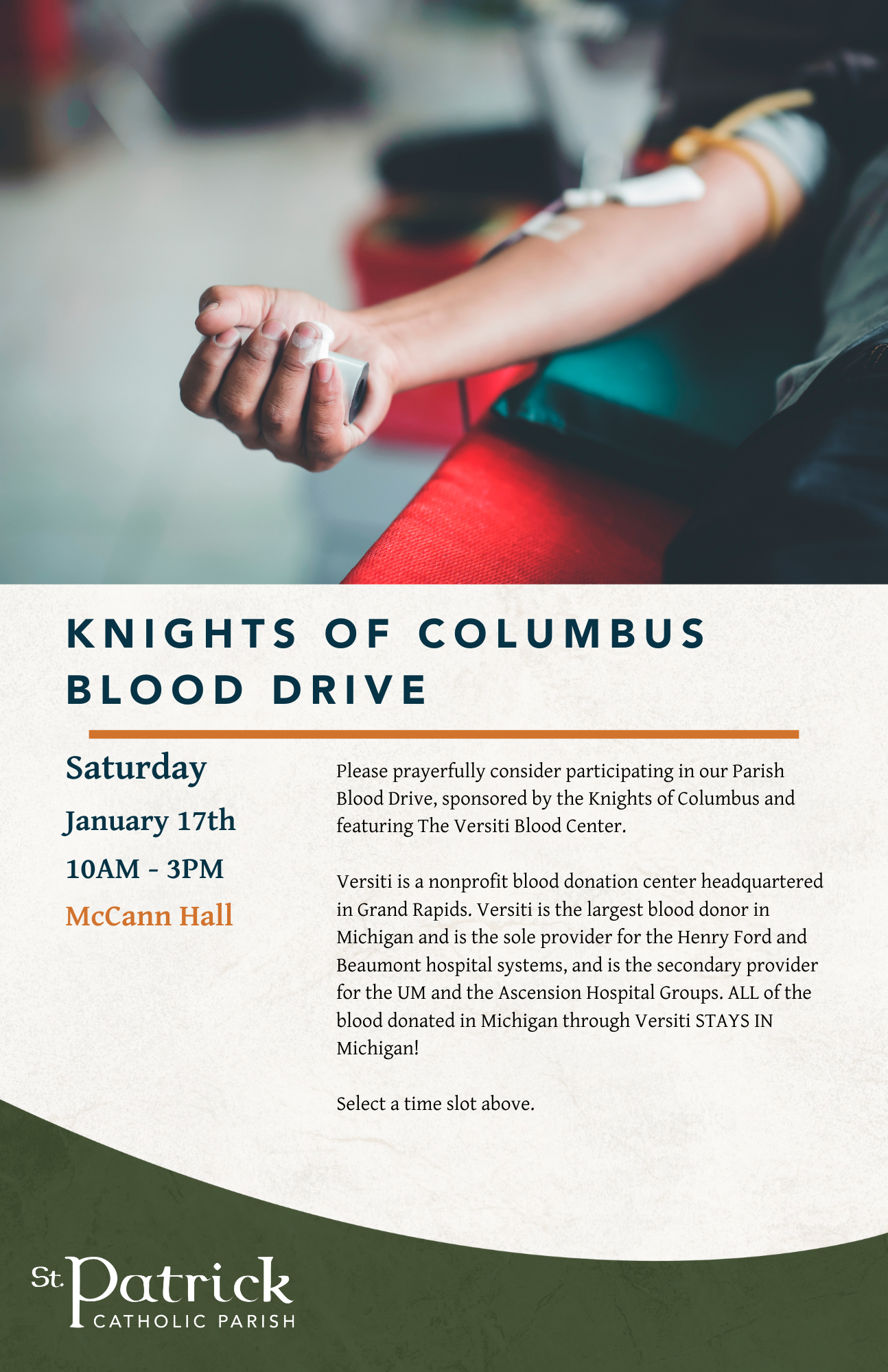 Knights of Columbus Blood Drive (Copy) Saturday, January 17, 2026 10:00 AM 11:00 AM Google Calendar ICS Pick a time slot