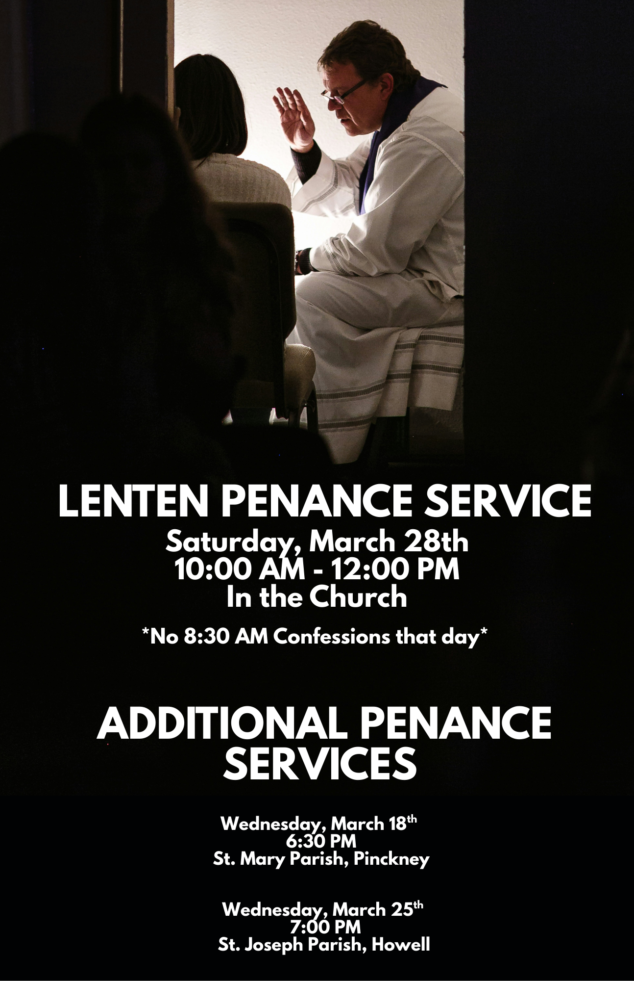 Back to All Events Lenten Penance Service Saturday, March 28, 2026 10:00 AM 11:00 AM Google Calendar ICS